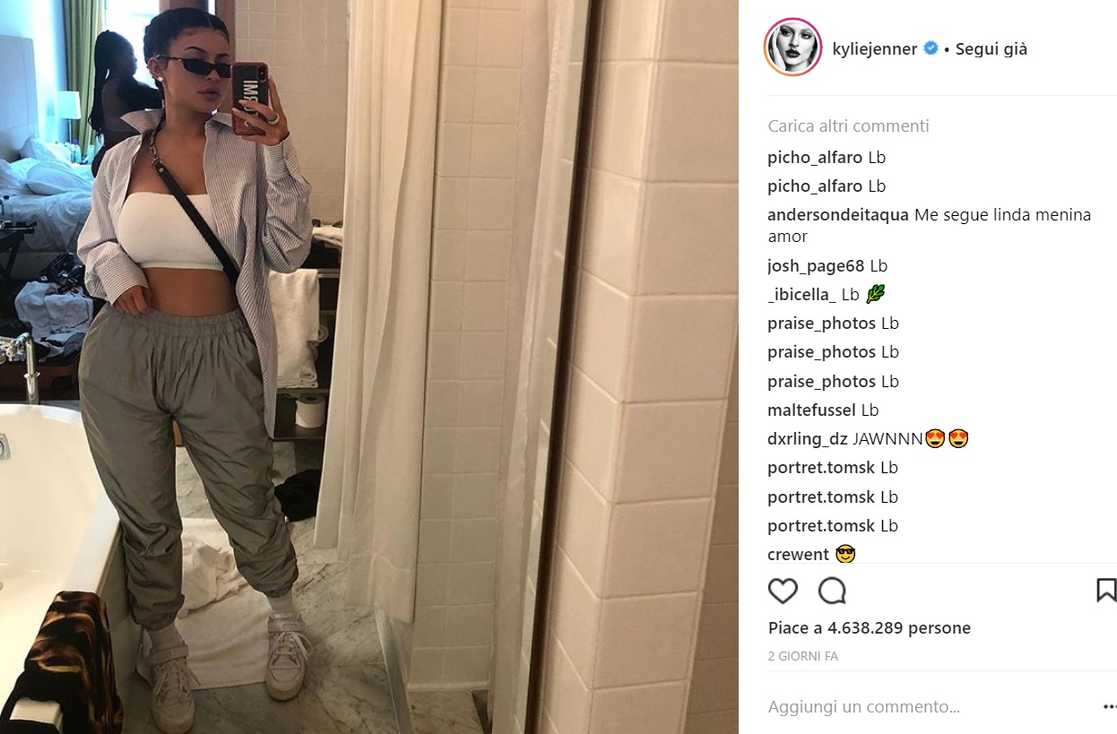 Negli ultimi tempi Kylie Jenner, da poco diventata mamma, sembra essersi convertita ai trend di quel periodo che va da fine anni ’90 a inizio 2000 che tanto abbiamo disprezzato negli ultimi tempi. Ma se lo sdogana lei... possiamo solo che incassare il colpo. E uno dei suoi recenti scatti pubblicati su Instagram non fa altro che confermare il trend: Kylie ha sfoggiato un look davvero pop formato da fascia bianca e pantalone della tuta in tessuto tecnico con elastico in vita. A rendere attuale la mise, una camicia extra-large lasciata aperta.