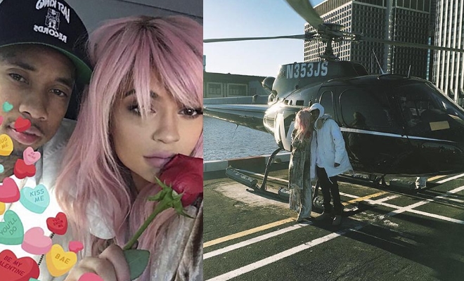 Kylie Jenner, San Valentino da non credere per la modella e per il suo fidanzato Tyge. I due infatti hanno passato la festa degli innamorati in…elicottero