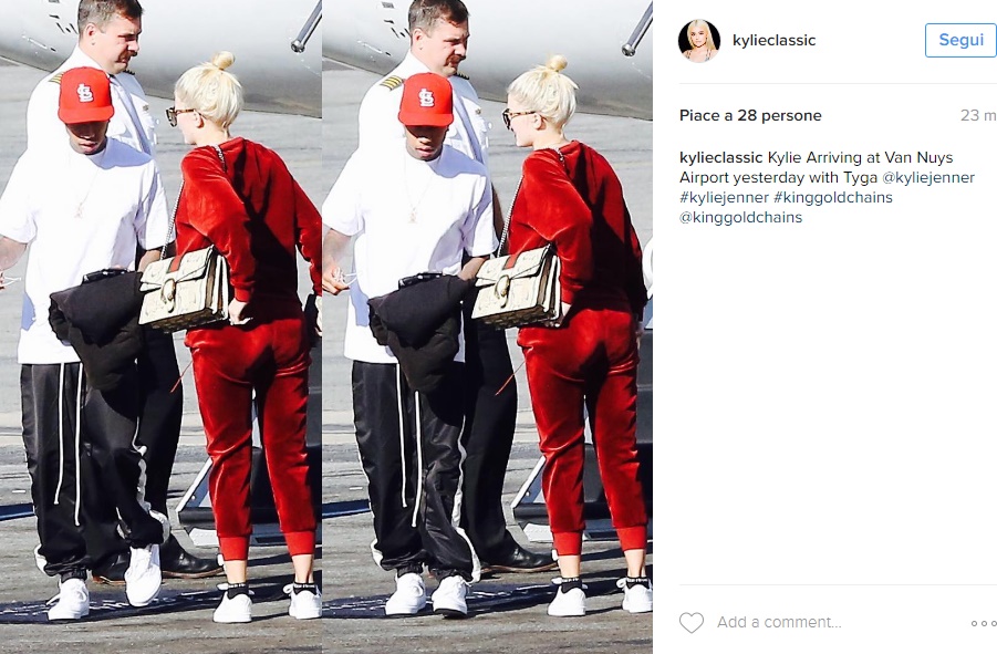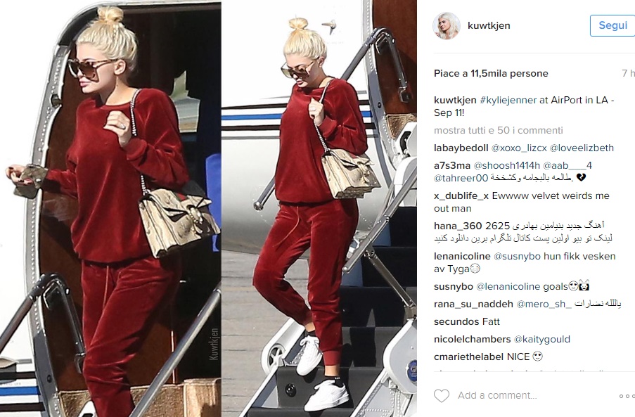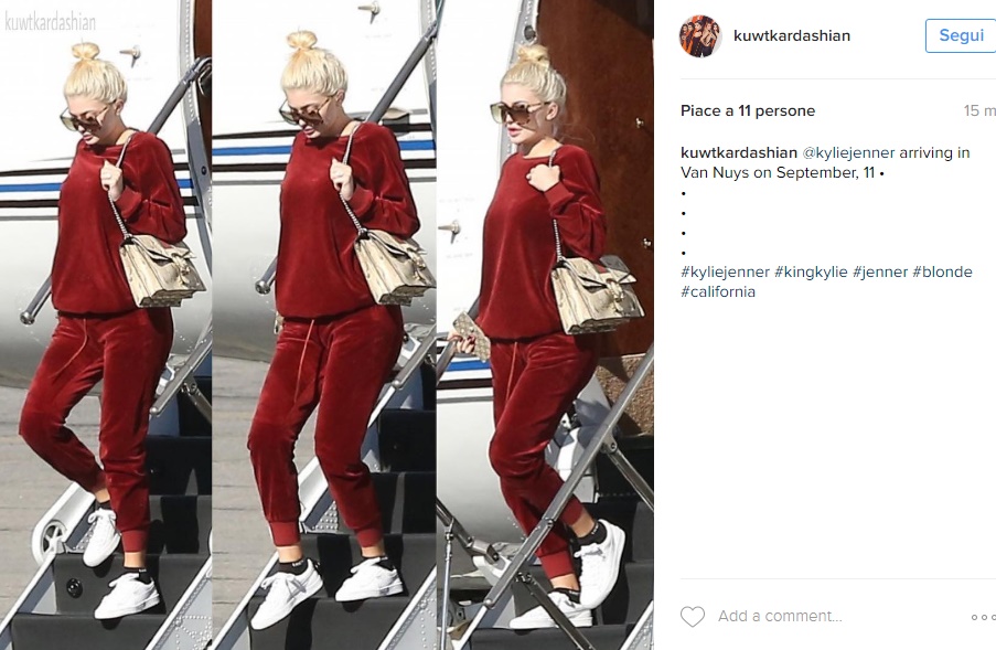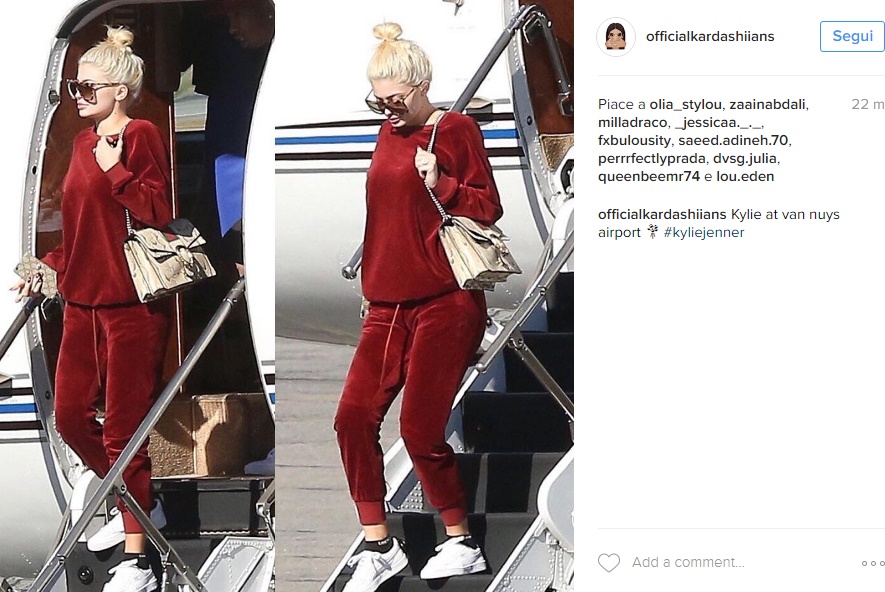 LOS ANGELES – Kylie Jenner sensuale… anche in tuta: aderente e casual FOTO. Kim Kardashian ha una degna rivale: da quando Kylie Jenner è diventata maggiorenne un anno fa sta letteralmente spopolando sui Social e i suoi look sono amatissimi di milioni di ragazze in tutto il mondo. Dopo che le fan sono letteralmente impazzite per le sue labbra carnose e sensuali, incredibilmente lievitate nel giro di pochissimi mesi, Kylie ha ottenuto una escalation di popolarità tanto che i suoi look vengono copiati da tantissime ragazze in tutto il pianeta. Dopotutto Kylie riesce ad apparire glamour con qualsiasi cosa indossi. A riprova di ciò, il suo ultimo look che ha spopolato tra le fan: in occasione di un viaggio in aereo, la sorellastra di Kim Kardashian ha scelto una semplicissima tuta di ciniglia rossa e sneakers. Un look che addosso a chiunque altro sarebbe risultato anonimo e sciatto ma che sfoggiato da Kylie risulta incredibilmente fashion: capelli biondo platino tirati su in uno chignon altissimo e occhiali da sole oversize completavano la mise.