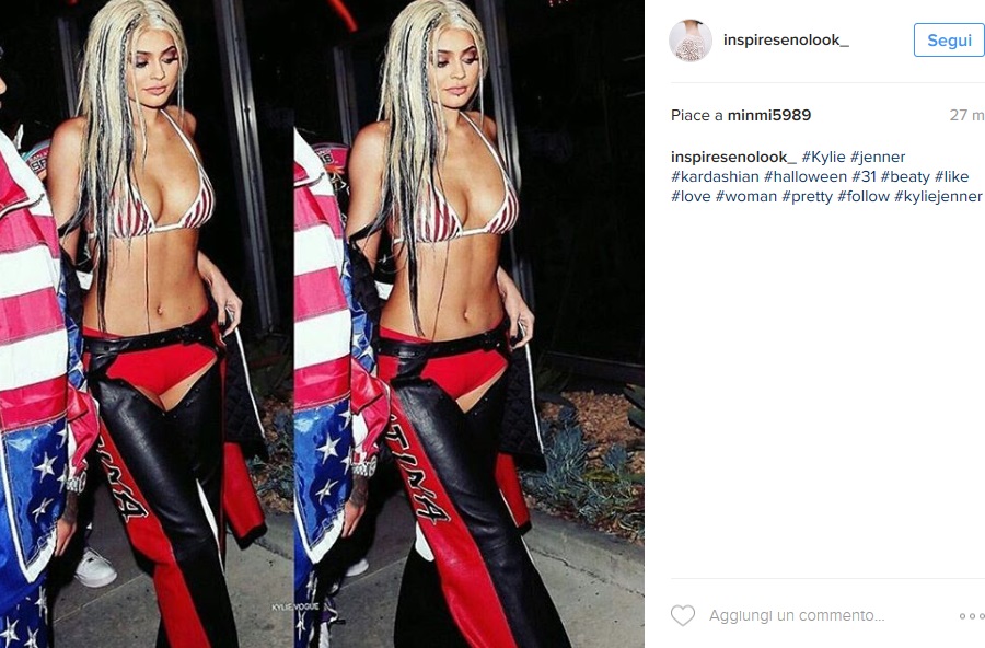 LOS ANGELES – Kylie Jenner sensuale: look di Halloween omaggio a… FOTO. Geniale il travestimento di Halloween di Kylie Jenner, la cui maschera è un chiaro riferimento niente meno che a Christina Aguilera… dei tempi d’oro, quando nel 2002 ha fatto impazzire tutti nel video di Dirrty. Giovane, sensuale, in super forma: era il momento più fiorente della carriera di Chrstina Aguilera, divenuta famosa in tutto il mondo con il singolo pubblicato nel 1999, Genie in a Bottle.