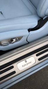 Ma cosa ha di tanto speciale questa auto di super lusso? Innanzitutto il colore, un blu ghiaccio dipinto apposta per Kylie. Anche gli interni sono in pelle sulla stessa tonalità blu ghiaccio. Il tetto interno ha dei cristalli sparsi qua e là. Sul predellino dell’auto, poi, la chicca finale: sul punto interno della vettura che si vede quando si apre la portiera c’è inciso il nome di Kylie.