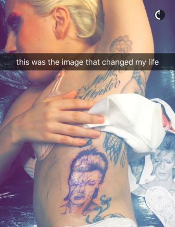 LOS ANGELES – Lady Gaga, nuovo tatuaggio con la faccia di David Bowie FOTO. La cantante si prepara a ricordare David Bowie cantando ai Grammy Awards che si svolgeranno questa sera. E per ricordare la star della musica inglese morta un mese fa, Lady Gaga si è fatta tatuare la sua faccia sul fianco sinistro riprodotta nella copertina dell’album Aladdin Sane. Bowie, per la Germanotta è stata fonte di ispirazione: mentre le realizzavano il tatuaggio, la regina del pop ha pubblicato sul proprio canale Snapchat le immagini dell’opera, anticipando così l’omaggio che renderà al Duca Bianco.