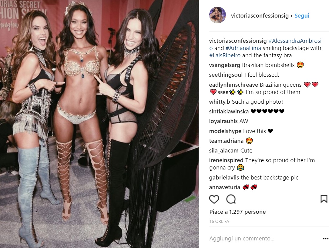 Per la Ribeiro, questa è la settima volta che sfila per Victoria’s Secret. La modella ha iniziato a lavorare per la famosa catena di intimo nel 2008, dopo essere diventata mamma di Alessandro. È diventata un Angelo nel 2015 e ha preso parte a tutte le sfilate tranne che nel 2012, quando si è slogata una caviglia durante le prove per lo show.