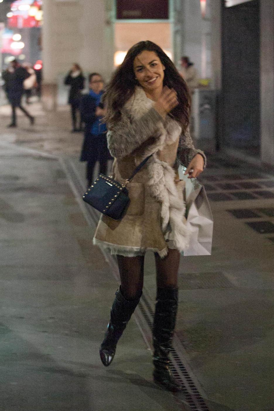 Laura Barriales in stivali e pelliccia a fare shopping 3