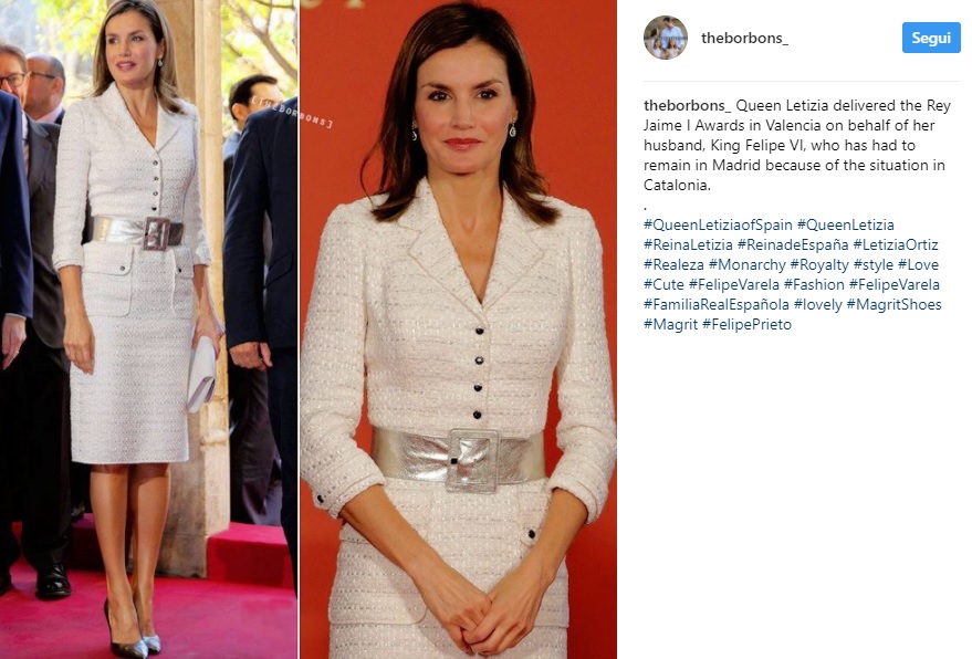 MADRID – Letizia Ortiz continua a stupire con i suoi outfit. La regina di Spagna, 45 anni, ha indossato un abito bianco aderente a manica lunga firmato Felipe Varela durante una cerimonia a Valencia . Ai piedi scarpe con tacco argentate, abbinate a una cinta dello stesso colore. Lo stile ricordava molto Chanel, ma si trattava del suo stilista di fiducia, che la veste da anni e che l’ha resa un’icona di stile.