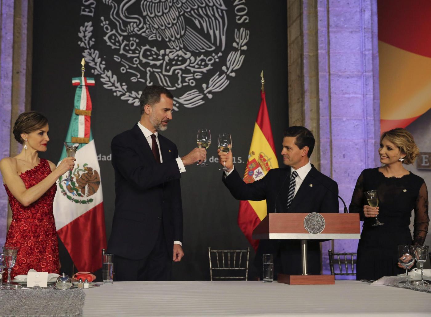 Spanish King Felipe VI (2L) and Queen Letizia (L) toast with Mexican president Enrique Pena Nieto and his wife Angelica Rivera at the National Palace during gala dinner in Mexico City, Mexico on 29 June 2015. The Spanish royals are in an official visit to the country. EFE/BALLESTEROS