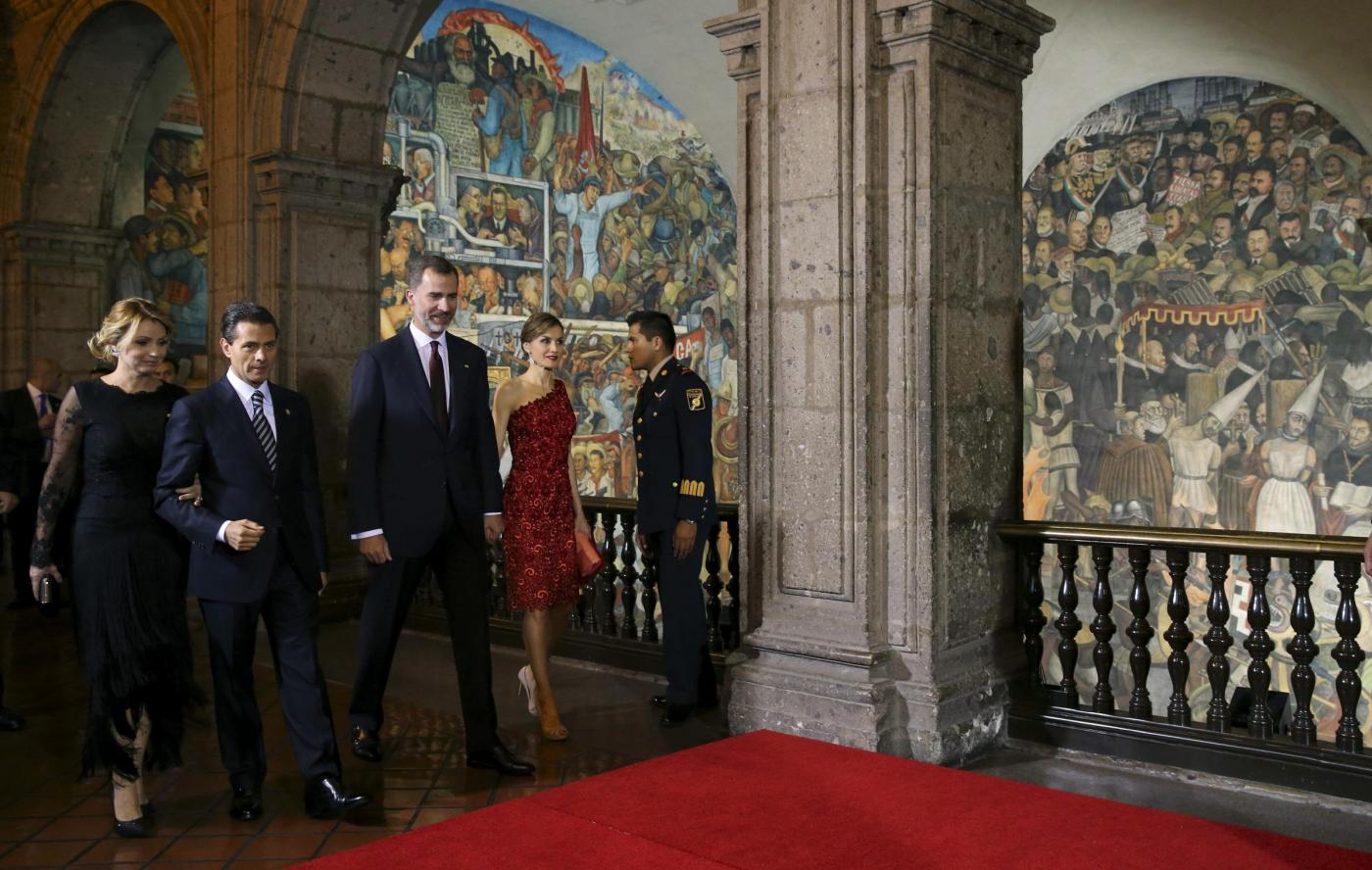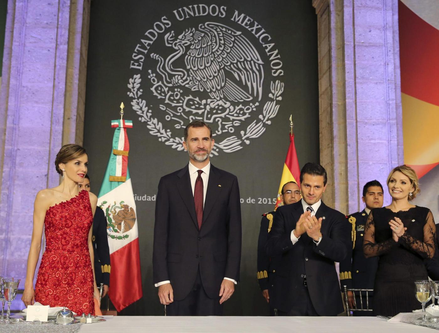 Spanish King Felipe VI (2R) and Queen Letizia (R) and president Enrique Pena Nieto and his wife Angelica Rivera at the National Palace during gala dinner in Mexico City, Mexico on 29 June 2015. The Spanish royals are in an official visit to the country. EFE/BALLESTEROS