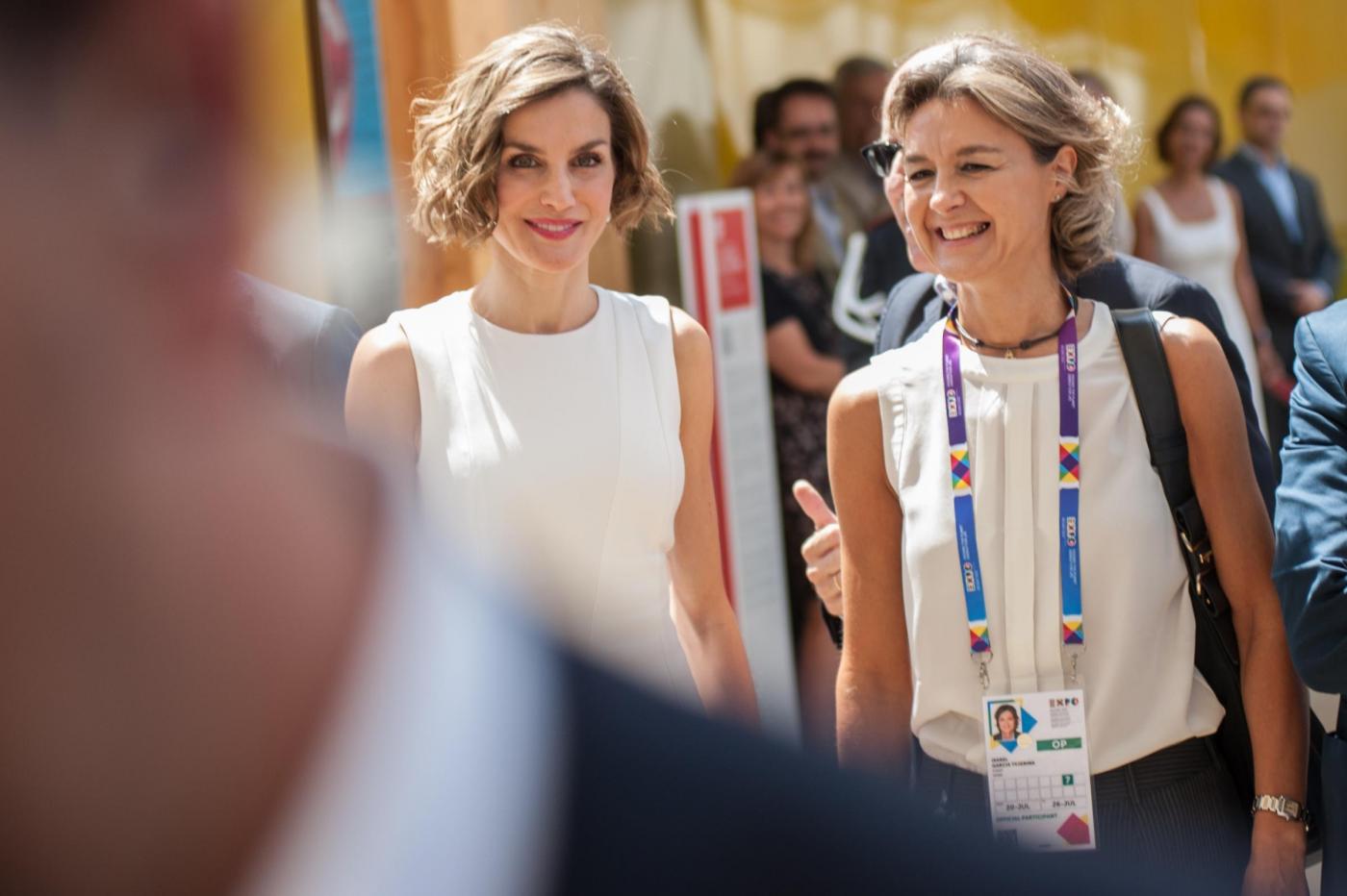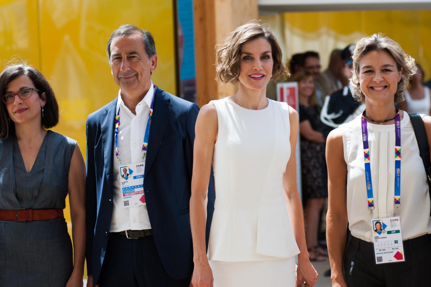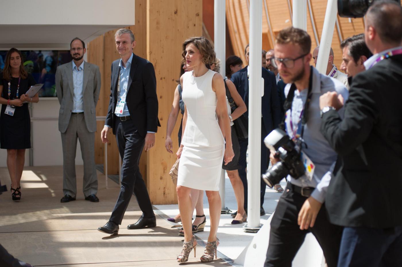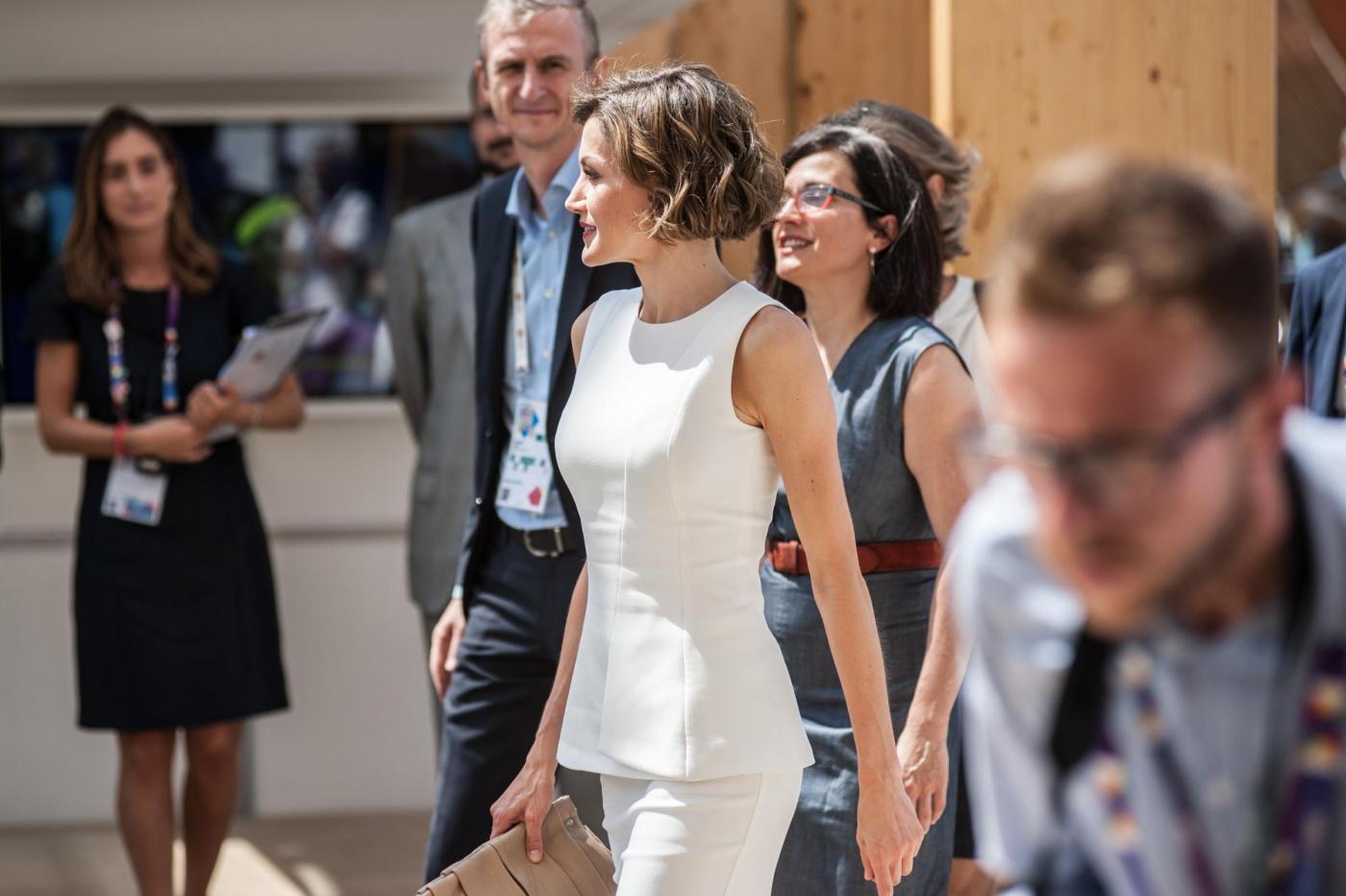 Letizia Ortiz in total white all'ExpoFoto Piero Cruciatti / LaPresse 23-07-2015 Milano, Italia Cronaca Visita privata di Sua Maesta la Regina di Spagna Doña Letizia Ortiz Rocasolano Nella Foto: Sua Maesta la Regina di Spagna Doña Letizia Ortiz Rocasolano Photo Piero Cruciatti / LaPresse 23-07-2015 Milan, Italy News Private Visit of Her Majesty the Queen of Spain Doña Letizia Ortiz Rocasolano as a FAO Ambassador In the Photo: Her Majesty the Queen of Spain Doña Letizia Ortiz Rocasolano