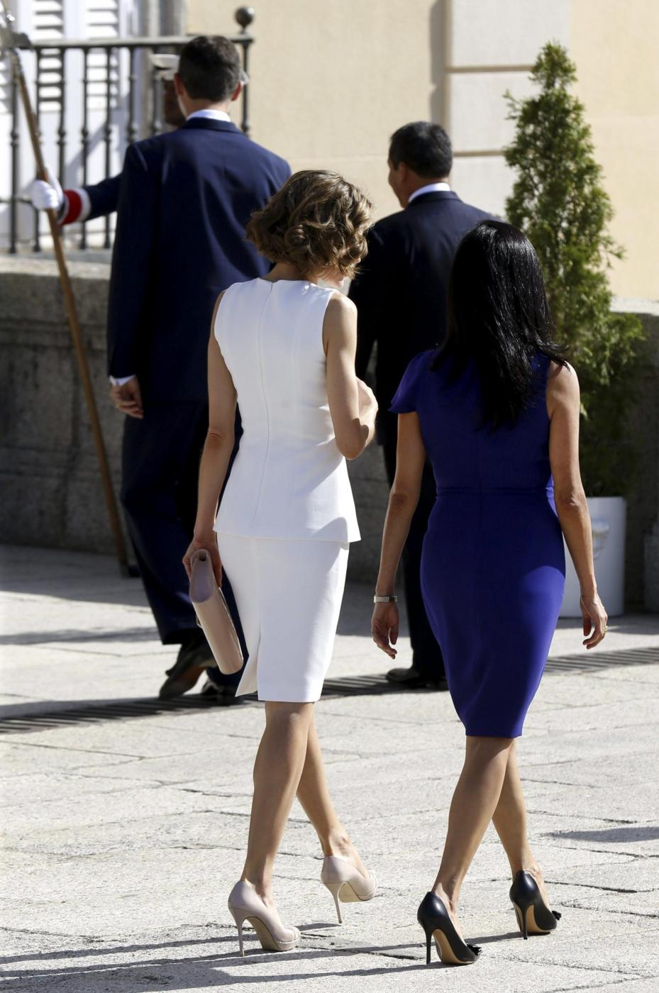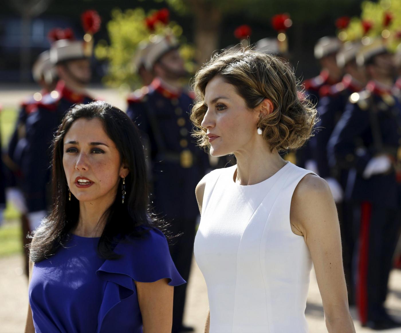 Spanish Queen Letizia (L) and Peru's First Lady, Nadine Heredia, during the welcome ceremony held at El Pardo Palace in Madrid, Spain, 07 July 2015. Peruvian President, Ollanta Humala, and his wife arrived to Madrid for a two-day long State visit that is focused on the business copperation and their bilateral relationship on education, culture, science and security matters. EFE/Sergio Barrenechea Lapresse Only italyRe Felipe e Regina Letizia di Spagna ricevono il presidente peruviano Ollanta Humala