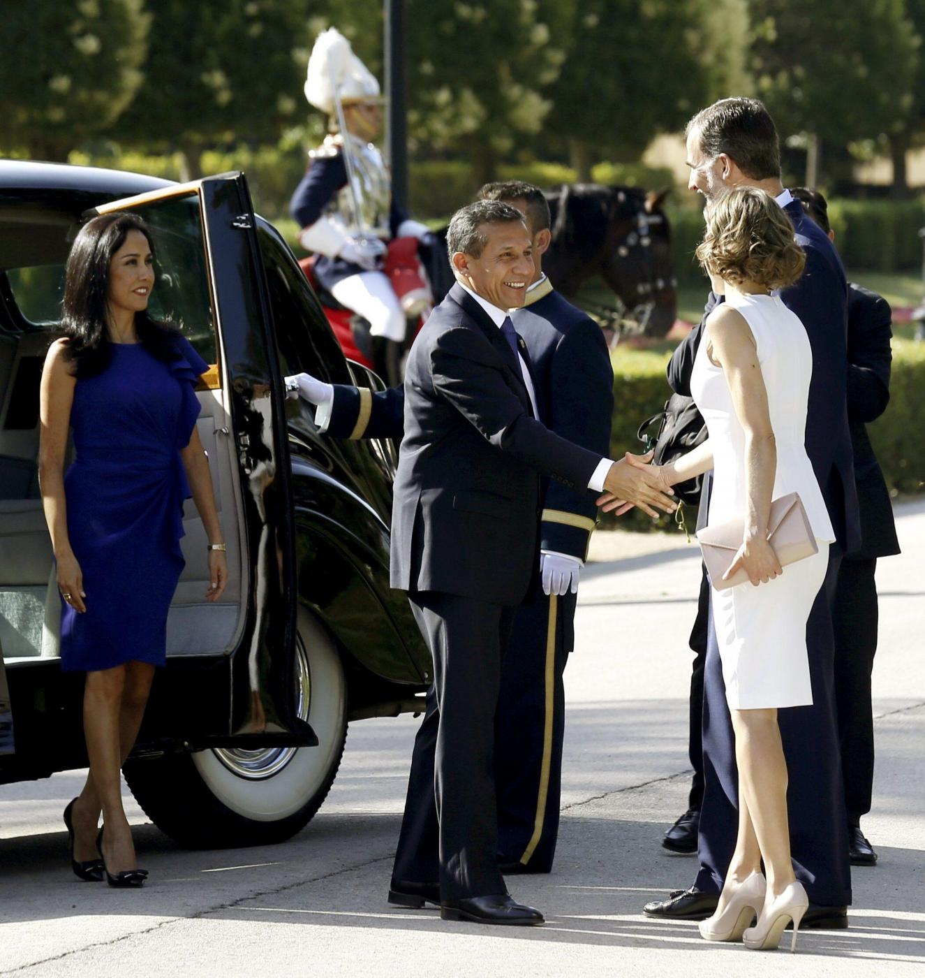 Spanish Queen Letizia arrives to the welcome ceremony in honor to Peruvian President, Ollanta Humala, and his wife Nadine Heredia, celebrated at El Pardo Palace in Madrid, Spain, 07 July 2015. Humala and his wife arrived to Madrid for a two-day long State visit that is focused on the business copperation and their bilateral relationship on education, culture, science and security matters. EFE/Sergio Barrenechea Lapresse Only italyRe Felipe e Regina Letizia di Spagna ricevono il presidente peruviano Ollanta Humala