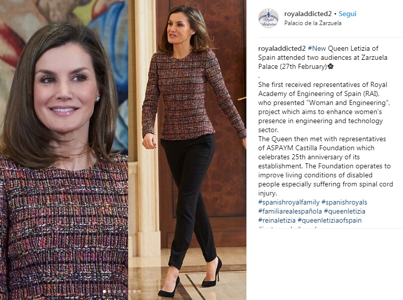 Che dire, come sempre Letizia Ortiz non sbaglia un outifit. Dopotutto che la regina sia considerata regina di stile è cosa ormai nota. Ogni suo look non passa mai inosservato. Mai fuori luogo, sempre perfetta e impeccabile in ogni situazione. In questi ultimi anni la moglie del re Filippo VI ha stravolto il suo guardaroba, dimostrando di non avere rivali in campo di stile. Letizia è un punto di riferimento fashion per milioni di donne. Merito anche dei suoi stylist che lavorano costantemente per renderla unica. Ormai non sono più solo le star del cinema e della musica a dettare la moda ma che regine e principesse (o duchesse nel caso di Kate Middleton). Ma anche Charlotte Casiraghi, Rania di Giordania, Mary di Danimarca, Maxima d’Olanda, poi la sceicca del Qatar. Tutte sono ormai delle icone fashion al di là di quello che è il loro ruolo istituzionale.