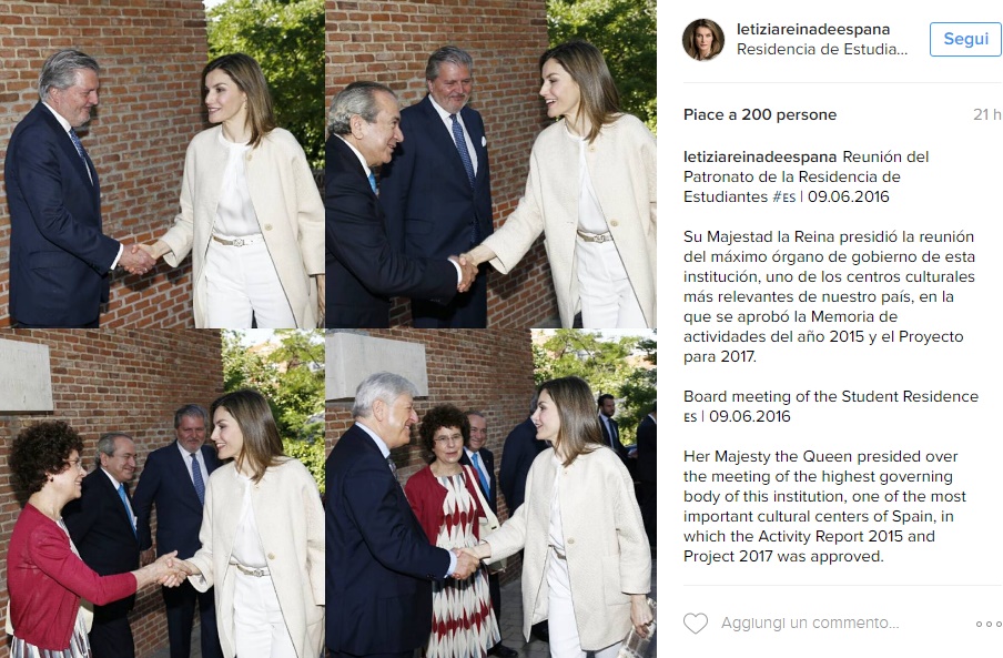 MADRID – Letizia Ortiz impeccabile: giacca low cost e tacchi alti FOTO. Un omaggio alla primavera e ai colori chiari il look scelto da Letizia Ortiz di Spagna in occasione dell’incontro con il Ministro spagnolo di Educazione, Cultura e Sport a Madrid. La regina di Spagna ha sfoggiato un total look neutro composto da pantaloni bianchi eleganti e blusa, giacca e tacchi tutti di colore neutro. A far scalpore, ancora una volta, la scelta di Letizia di optare per un capo low cost: la giacca, infatti, fa parte della nuova collezione Massimo Dutti, marchio low cost del gruppo Inditex (rigorosamente spagnolo) di cui fanno parte altre catene “a basso costo” come Zara, Bershka, Stradivarius o Oysho. Una scelta, quella della regina di Spagna, che va a braccetto con quella di Kate Middleton, considerata ormai una vera maestra del riciclo e del low cost. Non è raro infatti ammirare la Duchessa di Cambridge in abiti accessibili a tutte le tasche: una moda molto apprezzata dal popolo inglese e spagnolo che, in tempo di crisi, ammirano il gesto delle due principesse volto a cercare di dare “il buon esempio”.