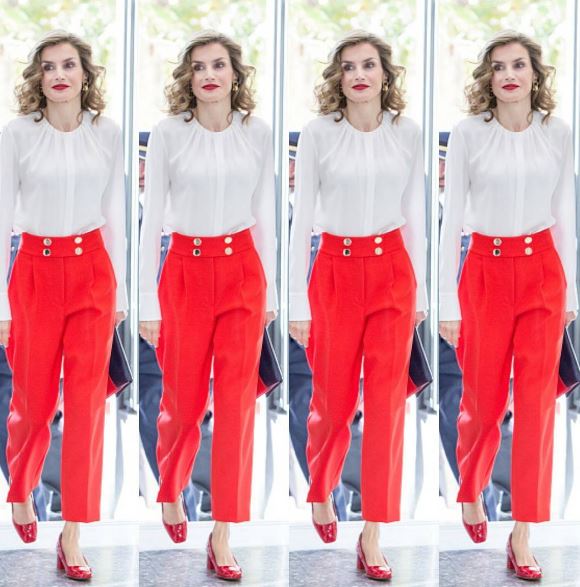 Letizia Ortiz impeccabile: pantaloni rossi e tacchi bassi FOTO