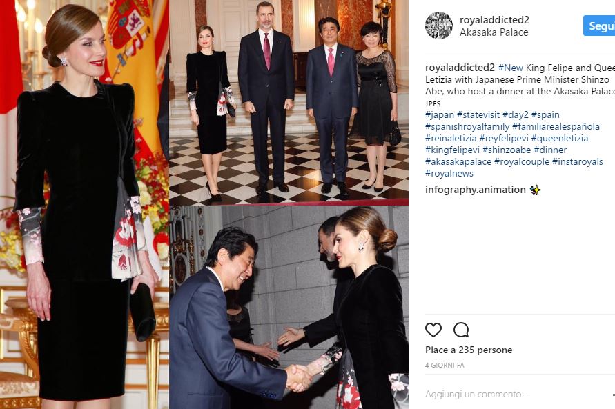 MADRID – Letizia Ortiz incantevole in Armani: regina di eleganza. La consorte di Filippo VI è reduce dal suo viaggio in Giappone, dove ha fatto visita all’imperatore Akihito e alla moglie Michiko. A non passare inosservati sono stati i look della regina, che ha sfoggiato una serie di outfit da sogno. Dai tubini agli abito lunghi stile principesco. Delizioso il capo firmato Armani nero (guarda le foto). Letizia è ormai un’icona di stile a tutti gli effetti. Insieme a Kate Middleton, Charlotte Casiraghi, Maxima d’Olanda, la sceicca Mozah, è diventata un punto di riferimento per milioni di donne. Ma chi si nasconde dietro gli outfit di Letizia Ortiz? Lo ha svelato la rivista spagnola Hola!. Il nome della sua fidata stilista è Eva Fernandez.