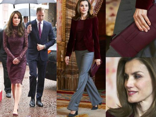 Letizia Ortiz, Kate Middleton: passione bordò. La prima, 34 anni, è la moglie di William duca di Cambridge. La seconda, 44 anni, è la consorte di Filippo VI re di Spagna. Raffinato e prezioso, il bordeaux quest’anno si conferma nuance di tendenza dell’inverno. Colore seducente, tende talvolta al rosso e altre volte al viola, si presta ad essere abbinato all’oro, al grigio e al nero. E’ adatto per le occasioni speciali, per una eleganza composta senza eccessi. Indicato anche per le feste natalizie. Non a caso, tanto Letizia, quanto Kate lo hanno scelto in queste settimane. (Guarda le foto nella gallery).