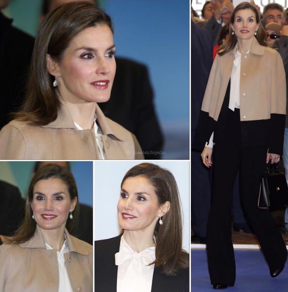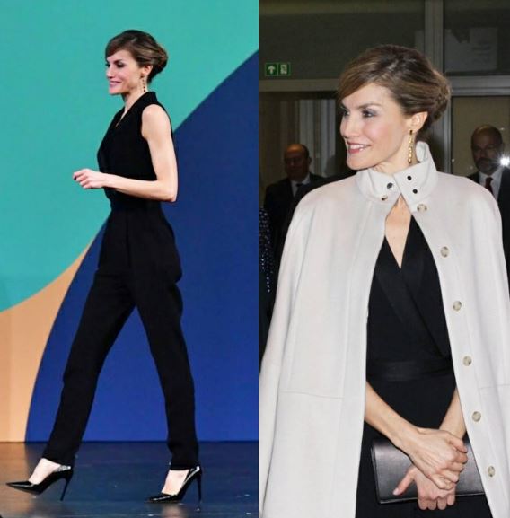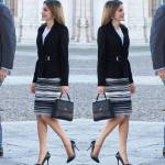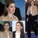 Letizia Ortiz, look casual: tailleur nero e maglione FOTO