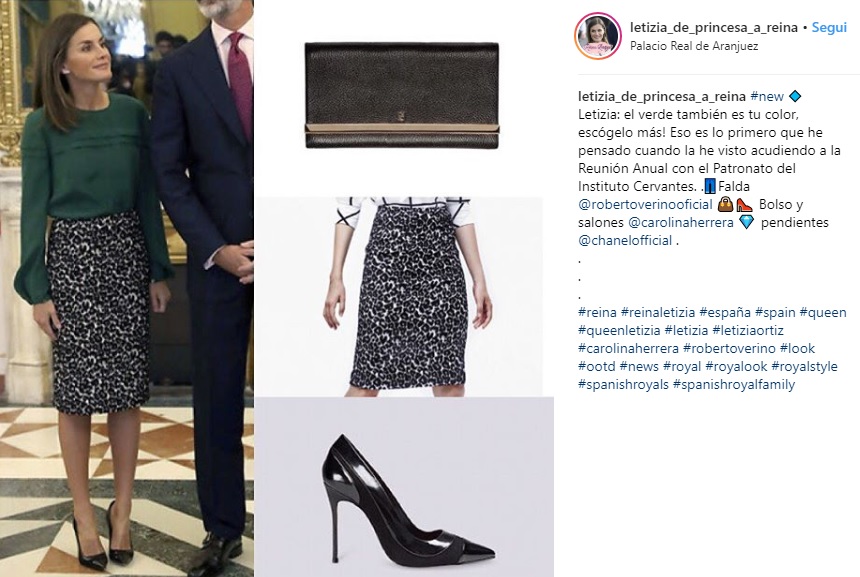 MADRID – Anche Letizia Ortiz sembra subire l’effetto Meghan Markle! La regina di Spagna è una delle donne più fashion del pianeta e le sue scelte stilistiche non passano mai inosservate. L’ultimo caso è l’outfit sfoggiato alla riunione annuale del patronato dell’Istituto Cervantes. Per l’occasione l’ex giornalista ha indossato un gonna longuette leopardata, abbinata a una camicia verde smeraldo.