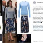 MADRID – Letizia Ortiz, look primaverile: gonna floreale e maglia celeste per la regina di Spagna.