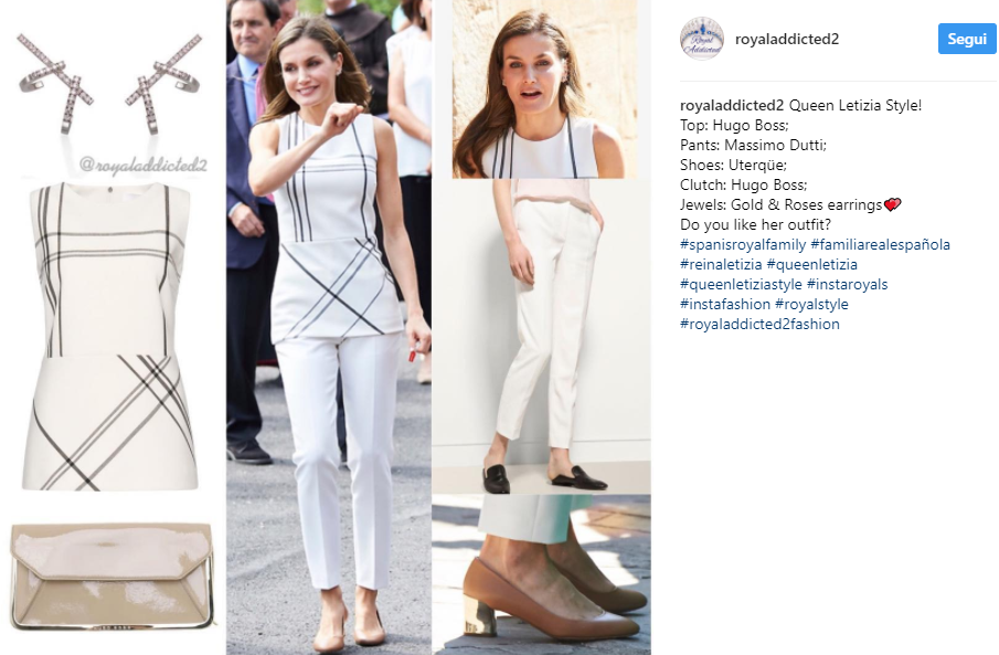 Letizia Ortiz: Massimo Dutti trousers, Carolina Herrera top, Mango shoes