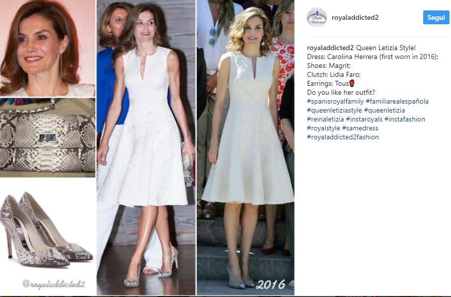 MADRID – Letizia Ortiz look: tubino rosso e mules. La regina di Spagna non smette di stupire quando si tratta di mettere in mostra la sua bellezza. La moglie di Filippo VI ha sfoggiato un outfit semplice e chic in occasione di una sua uscita in pubblico a Malaga. L’ex giornalista e reporter d’assalto ha indossato un abito firmato Nina Ricci, abbinato a un paio di sandali sabot by Magrit e clutch firmata Carolina Herrera, una delle sue stiliste predilette. Letizia deve molto anche ai suoi stylist che scelgono per lei look sempre molto azzeccati. Mai volgari, mai banali, sempre sensuali e alla moda allo stesso tempo.