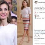 Letizia Ortiz look: gonna longuette multicolor e tacchi