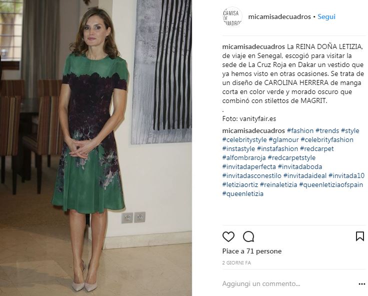 Letizia Ortiz ha indossato un abito verde firmato Carolina Herrera (una delle sue stiliste più amate) durante il suo ultimo viaggio in Senegal. La sovrana si trova del Paese africano senza re Felipe. E’ stata acclamata dai senegalesi, che hanno anche scattato numerosi selfie insieme alla regina.