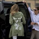 L’altra polemica è legata a un look di Melania Trump, che volata in Texas in una struttura di accoglienza per bambini migranti separati dalle loro famiglie, (una scelta decisa e un messaggio forte da parte della first lady americana), ha indossato una giacca con una scritta che solleva quesiti. [App di Blitzquotidiano, gratis, clicca qui,- Ladyblitz clicca qui –Cronaca Oggi, App on Google Play]”Non mi importa per niente. E a te?”. Questa, secondo molte ricostruzioni basate sulle foto della first lady, la scritta che compare sul retro del parka verde militare che Melania ha indossato questa mattina mentre s’imbarcava a Washington sul volo diretto in Texas.