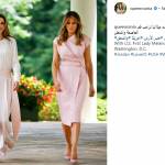 Rania di Giordania e Melania Trump hanno invece optato per il rosa nel loro recente incontro alla Casa Bianca. Rania ha indossato pantaloni a vita alta rosa, abbinati a una camicia bianca a manica lunga. Melania ha un tubino rosa con chiusura wrap firmato Proenza Schouler, non senza gli immancabili tacchi.