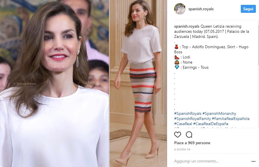 MADRID – Letizia Ortiz torna da Londra e…ricicla l’abito. La regina spagnola, 44 anni, è reduce dal suo viaggio nel Regno Unito, dove ha incantato tutti con la sua bellezza ed eleganza. Per qualche giorno gli occhi del mondo fashion non erano puntati solo su Kate Middleton, ma anche sull’ex giornalista. Ora che è di nuovo in patria la moglie di Filippo VI ha ripreso a girare per la Spagna portando avanti i suoi impegni istituzionali. Come già accaduto più volte in passato, Letizia ha riciclato l’outfit, un delizioso tubino bianco firmato Carolina Herrera.