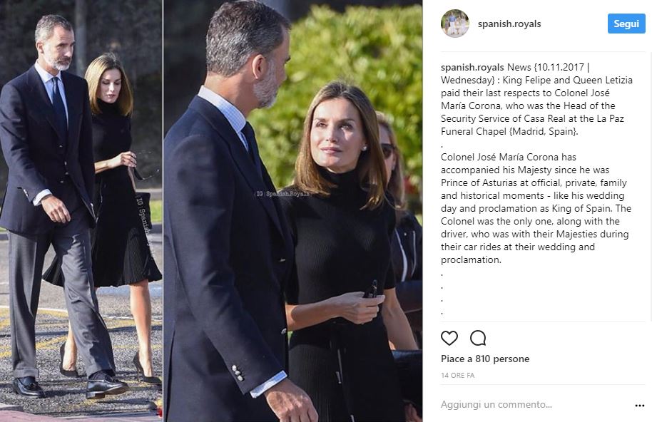MADRID – Letizia Ortiz torna a mostrarsi in pubblico dopo che per più di una settimana ha rinunciato ai suoi impegni istituzionali. La Spagna sta attraversando una delicata fase storica per via del tentativo della Catalogna di separarsi dal resto del Paese. In realtà, la regina non ha preso parte a una manifestazione pubblica, bensì al funerale di José María Corona, l’uomo che si occupava della sicurezza dei due sovrani. Un personaggio a loro legatissimo e questo spiega perché tanto Felipe quanto la sua consorte non potevano mancare a dare il loro ultimo saluto a Corona.