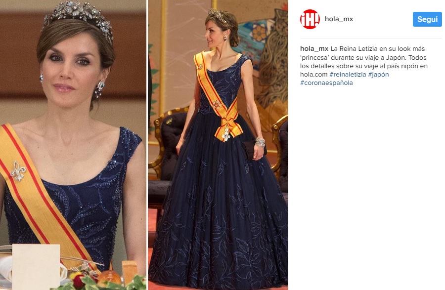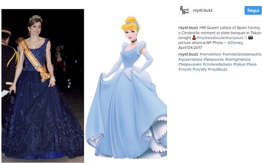 TOKYO – Letizia Ortiz versione Cenerentola: abito da sogno in Giappone. Il re Felipe di Spagna e la sua consorte, sono ospiti in Giappone dell’imperatore Akihito e della moglie Michiko. Dopo aver visitato il Museo della Scienza e dell’innovazione della capitale, incontrando Asimo, il robot di ultima generazione della Honda, hanno preso parte a un banchetto organizzato in occasione della loro visita nel Paese del Sol Levante. A non passare inosservata è stata la regina, che ha indossato un vestito lungo blu con gonna ampia. Un outfit che rispecchiava al massimo il suo ruolo di regina. Non è mancata qualche ironia in rete. Sui social c’è chi l’ha paragonata a Cenerentola per via del capo particolarmente vistoso.