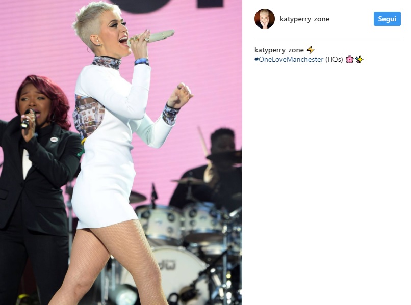 MANCHESTER – Katy Perry era tra gli artisti che hanno reso omaggio alle 22 vittime dell’attentato di Manchester sul palco di One Love Manchester, concerto organizzato dalla cantante Ariana Grande. L’artista Katy Perry non è passata inosservata per il suo vestito, che aveva delle parti fatte con un collage delle foto di chi ha perso la vita nell’attentato. La cantante californiana è nota per i suoi look eccentrici, che non passano mai inosservati. In questo caso l’abito indossato aveva un nobile fine, quello di omaggiare chi non è sopravvissuto all’attacco. Il ‘live’ di beneficenza, in una città e in un Paese blindati, si è svolto sotto una sorveglianza addirittura maniacale allo stadio del cricket di Old Trafford.