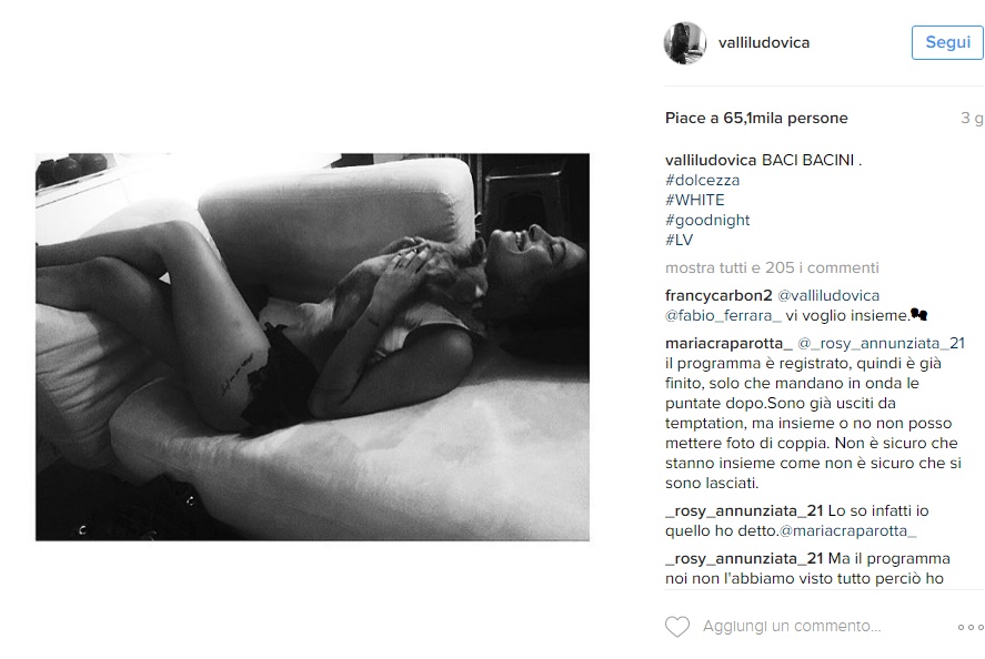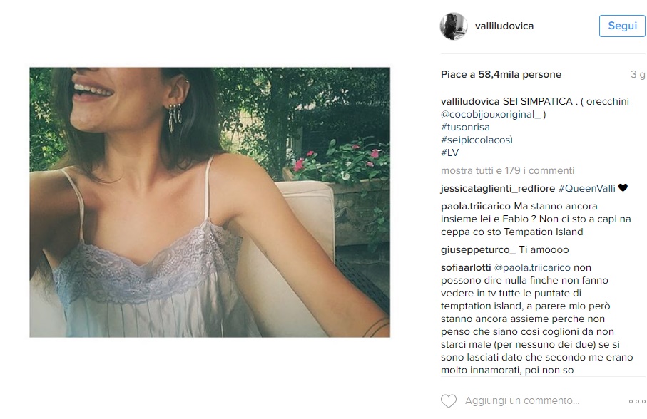 ROMA – Ludovica Valli e Fabio Ferrara stanno ancora insieme? Le FOTO su Instagram. Andrà in onda questa sera 5 luglio 2016 la seconda puntata di Temptation Island e, dopo nemmeno una settimana, si comincia già a parlare di possibile crisi tra Ludovica e Fabio, la coppia nata sul trono di Uomini e Donne nemmeno 2 mesi fa. Durante la prima puntata di Temptation Island, infatti, Fabio ha avuto la possibilità di conversare con la single Diana e, soprattutto, di conoscere più a fondo la tentatrice Melissa Castagnoli. Non solo: Fabio ha attirato su di sé anche l’attenzione di Francesca Serra, una delle tentatrici più in vista di questa edizione del programma. Ludovica Valli non ha preso bene la situazione e si è innervosita parecchio, arrivando anche a lanciare una frecciatina velenosa alla “rivale” Francesca: