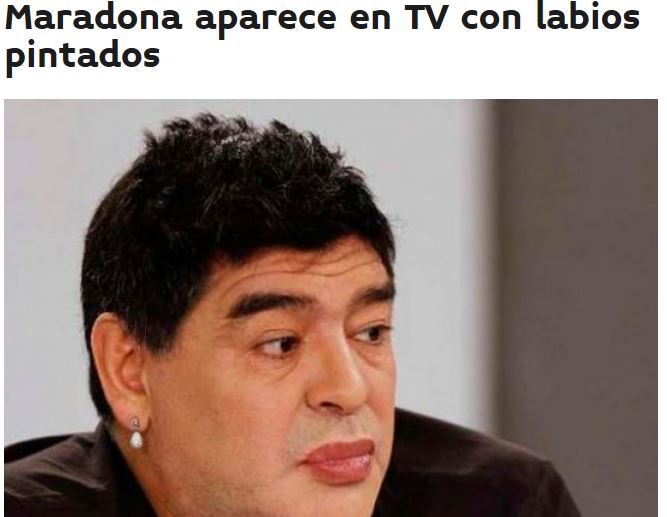 CARACAS- Maradona in tv con le labbra colorate? La FOTO che impazza sul web. La leggenda del calcio argentino, 54 anni, ospite lo scorso primo marzo in uno show televisivo a Caracas, Venezuela, sembra apparentemente indossare del rossetto in diretta televisiva. Non a caso qualche settimana fa una voce circolata sui media argentini ipotizzava un possibile ritocchino da parte del Pibe de Oro. Nelle immagini pubblicate online è apparso con la pelle tiratissima e con molte meno rughe.