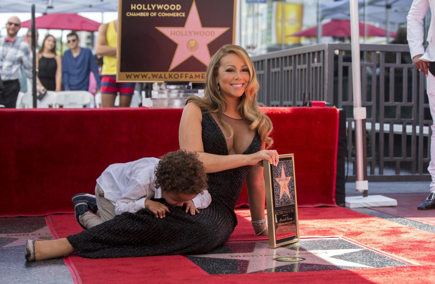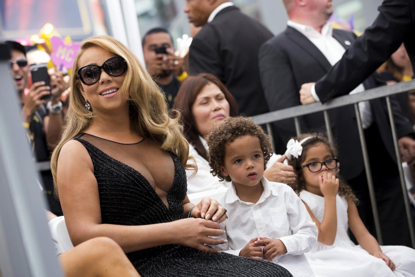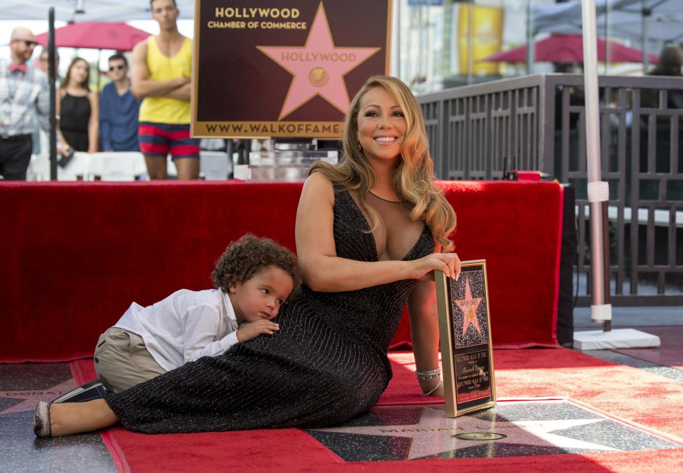 Recording artist Mariah Carey and her children Moroccan Scott and Monroe Cannon attend the ceremony for the unveiling of her star on the Hollywood Walk of Fame in Los Angeles, California August 5, 2015. REUTERS/Mario Anzuoni