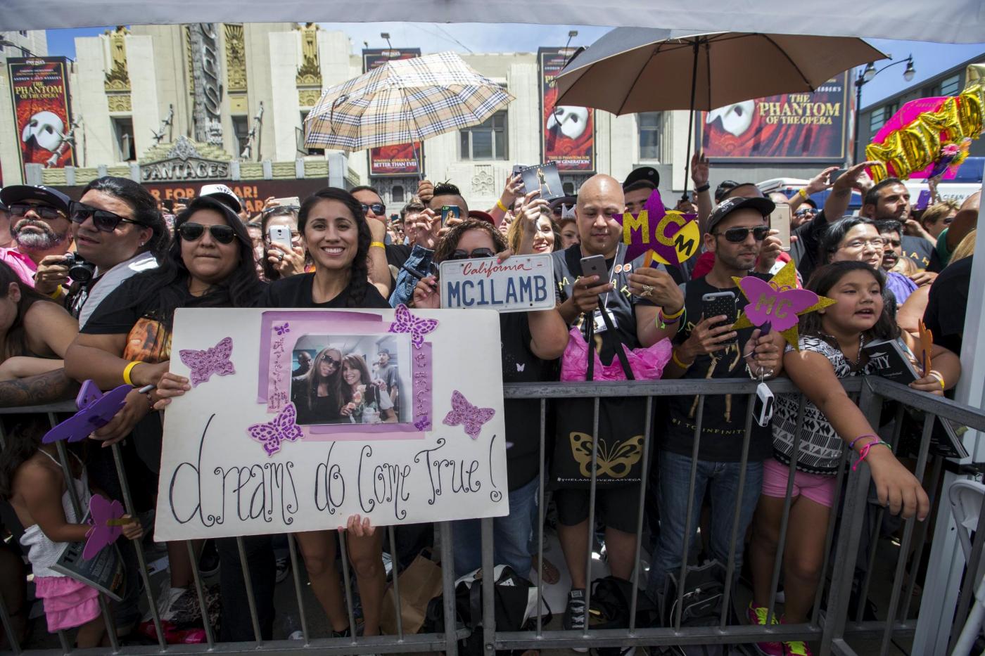 La cantante newyorkese, che ha ricevuto la stella con otto anni di ritardo rispetto all’approvazione della Camera di commercio di Hollywood per problemi organizzativi legati alla sua agenda, è stata accompagnata alla cerimonia da amici e familiari. Foto LaPresse.