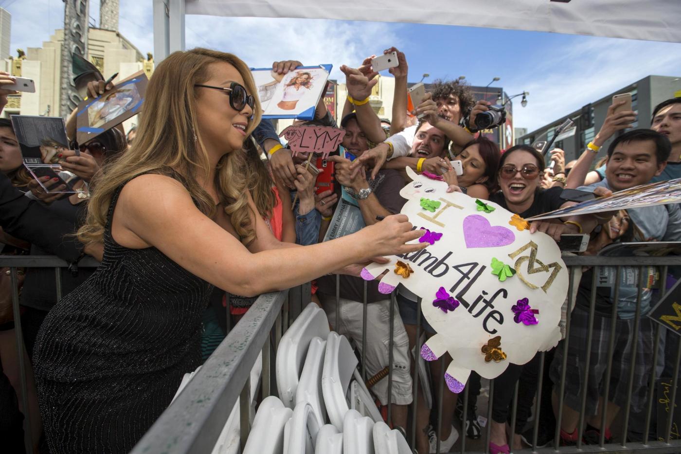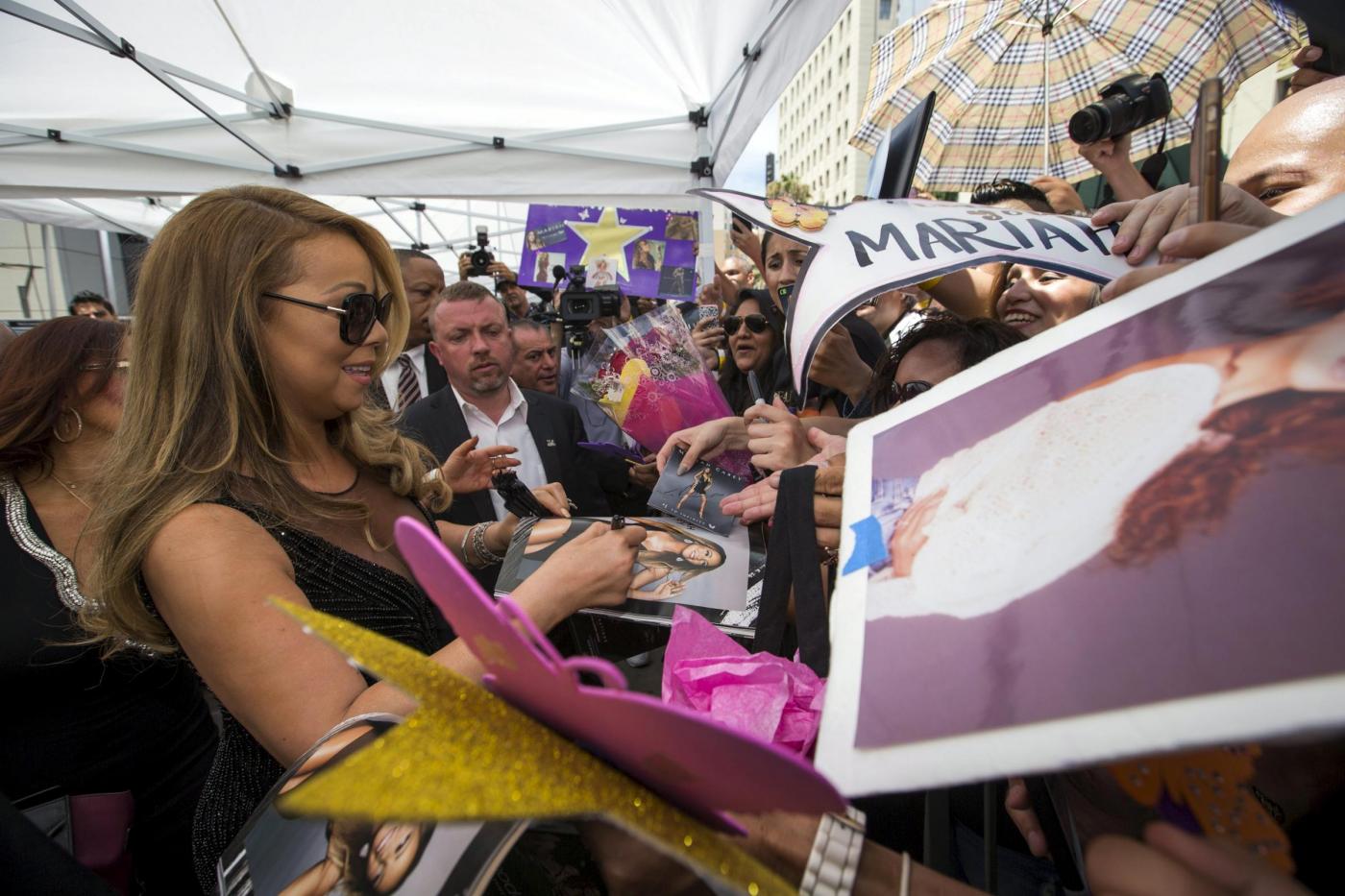 Recording artist Mariah Carey signs autographs after unveiling her star on the Hollywood Walk of Fame in Los Angeles, California August 5, 2015. REUTERS/Mario Anzuoni