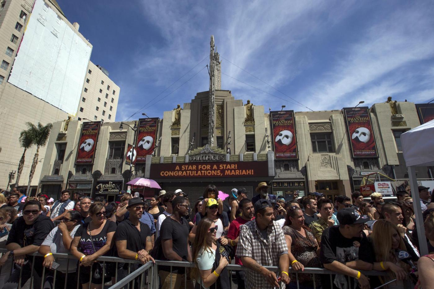 Fans wait at the ceremony where recording artist Mariah Carey unveiled her star on the Hollywood Walk of Fame in Los Angeles, California August 5, 2015. REUTERS/Mario Anzuoni