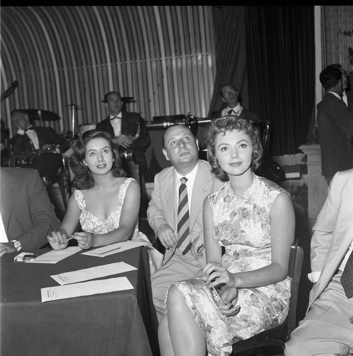 Marisa del Frate, Silvio Gigli e Silva Koscina durante le elezioni di 'Miss Roma'. ANSA