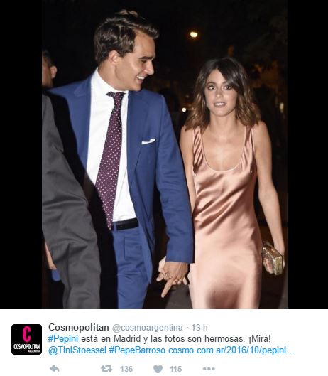 “Per me non c’è uno stereotipo di uomo preferito. Io non mi pongo un limite di età. Deve essere rispettoso e un cavaliere fedele”. Tini se la prende poi con gli uomini poco fedeli: “Da quello che ho notato nel mio cerchio di amicizie, e anche oltre, la fedeltà è scarsa (…) l’inganno viene da dentro, prima di materializzarsi fuori, stare con qualcuno prima di dover imparare a non barare sulla nostra testa e il cuore”. Di seguito la foto di Martina Stoessel e Pepe Barroso a Madrid. (Twitter).