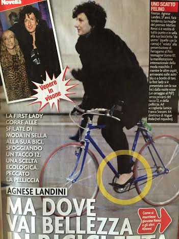 Matteo Renzi, moglie Agnese in bici con tacchi e pellicia FOTO