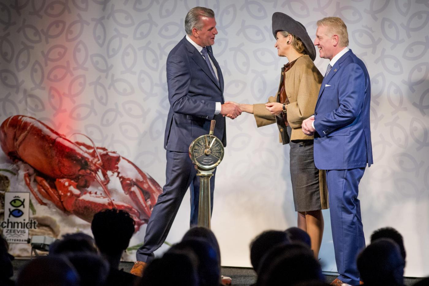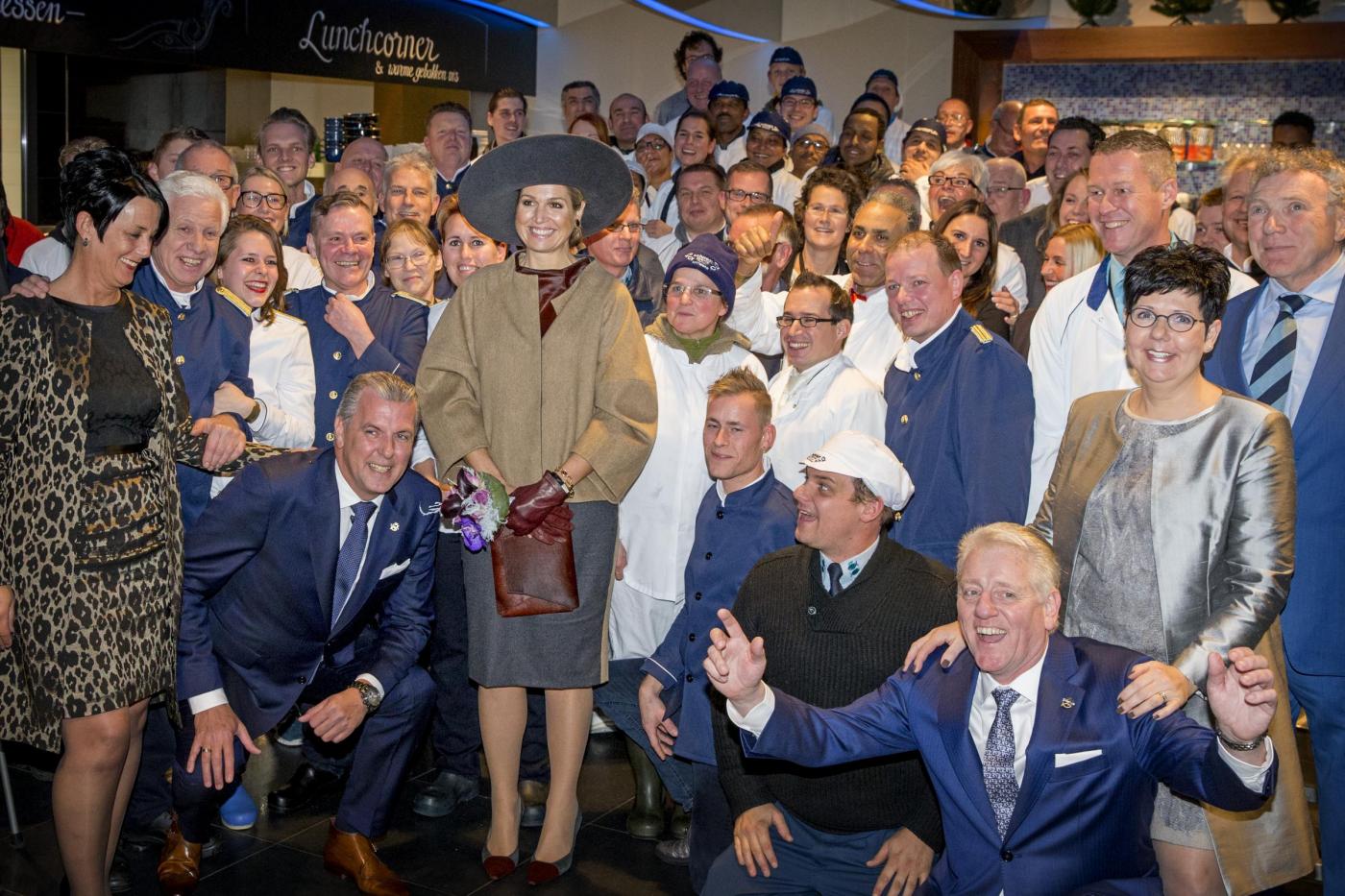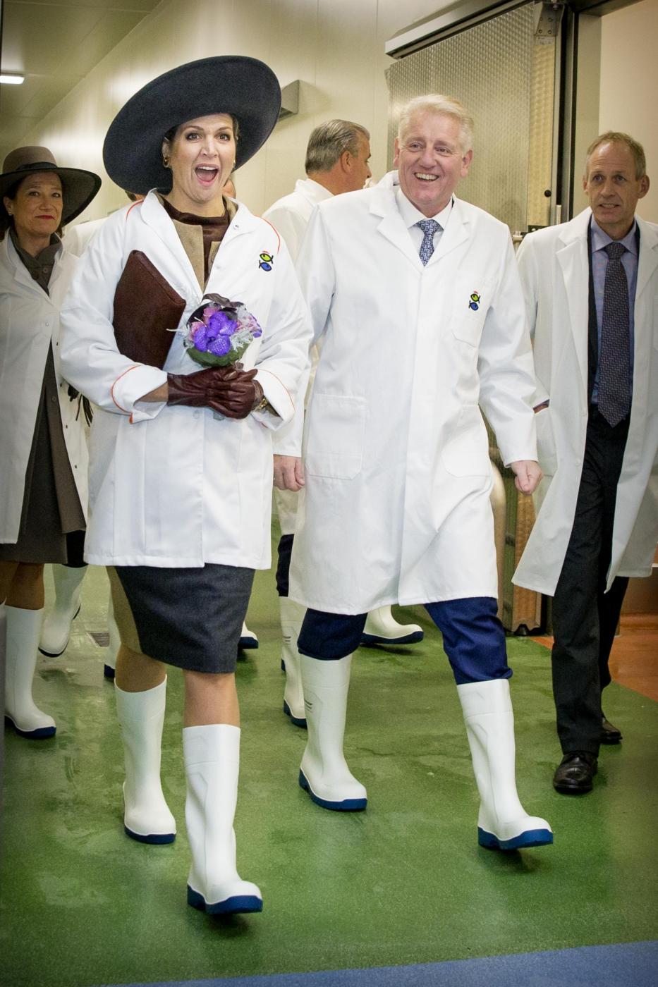 ROTTERDAM – Maxima d’Olanda: galosce e camice bianco… che fa? FOTO Galosce, camice bianco e… cappello a falda larga. Fa sorridere il look scelto da Maxima, regina d’Olanda. Una mise che, tuttavia, è stata resa necessaria visto il luogo: il nuovo mercato del pesce che la regina d’Olanda ha inaugurato a Rotterdam. Sotto il camice bianco, infatti, è possibile distinguere uno dei look sempre molto eleganti e chic di Maxima: giacchina color cammello dalle maniche ampie e tubino con gonna a matita e blusa svolazzante dai colori in tinta. Tolte le galosce, spazio alla sua vera passione: la scarpe con il tacco. In questa occasione la regina d’Olanda ha optato per un paio di decolletè sempre sui toni del marrone.