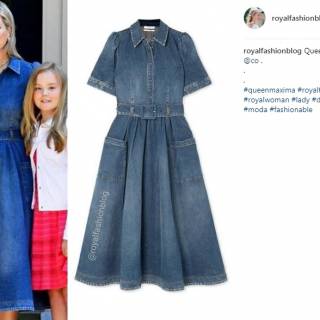 Per l’occasione Maxima ha indossato un abito di jeans a mezza manica con gonna ampia. Un modello piuttosto casual, adatto alla situazione informale. Si tratta di un capo firmato Co-collections.