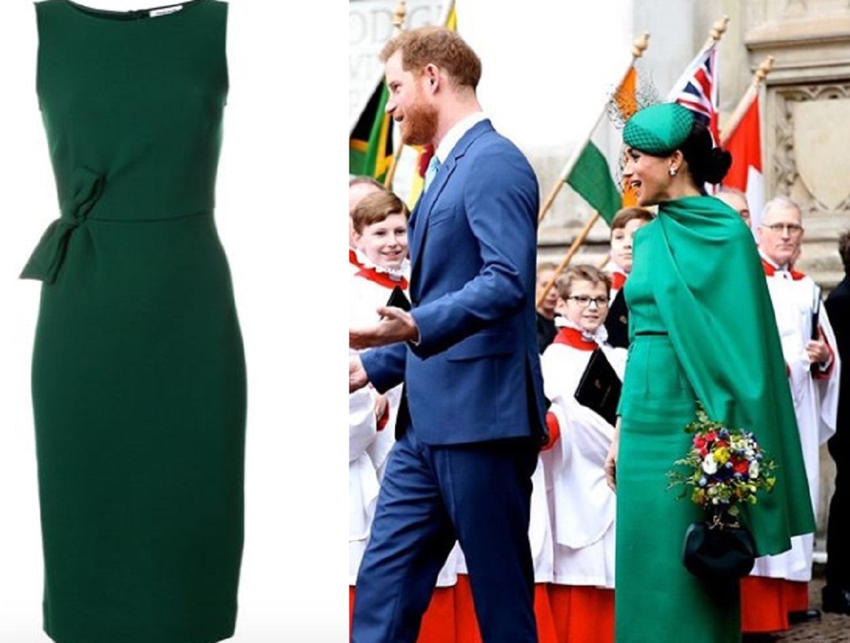 Per l’occasione la duchessa del Sussex ha indossato un audace mantello color smeraldo firmato Emilia Wickstead, abbinato a un cappello di William Chambers, un’elegante mini bag di Gabriela Hearst e scarpe décolleté nude di Aquazzura. Un abito che sembrerebbe nascondere due messaggi importanti.