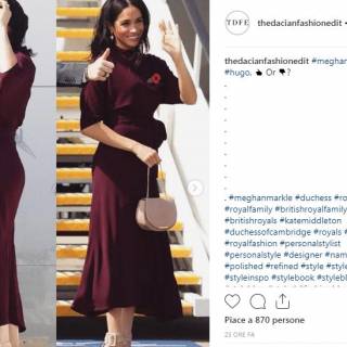 La sovrana spagnola ha rotto gli schemi per quel che riguarda l’immagine classica di regina. Ha indossato scarpe pitonate, borchiate o stringate, pantaloni neri in pelle e abiti di brand popolarissimi come Zara. Ma c’è uno stilista che la moglie di re Felipe ha sempre prediletto: Hugo Boss. E proprio nel suo recente viaggio Meghan ha indossato un abito della stessa maison. Un abito aderente bordò con cintura in vita incorporata e maniche a tre quarti, abbinato a un paio di scarpe Aquazzura color carne.