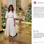 WASHINGTON – Melania Trump, abito bianco Dior: polemica sul web FOTO. Sembra una visione Melania Trump: in occasione della presentazione degli addobbi di Natale della Casa Bianca, la first lady ha sfoggiato un abito da sogno firmato Dior. Si tratta di un abito bianco candido dallo stile principesco, maniche a tre quarti e gonna ampi, cintina in vita dorata in perfetta armonia con le scarpe sparkle-gold. Il tema delle decorazioni allestite quest’anno insieme al grande abete nazionale, scelto da lei, è “Tradizioni onorate dal tempo” in omaggio ai 200 anni di tradizioni natalizie alla Casa Bianca.