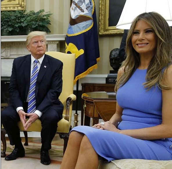 WASHINGTON – Donald Trump e Melania ricevono alla Casa Bianca Juan Carlos Varela, il presidente di Panama, e la moglie. La first lady è elegante come sempre, con un tacco 12 di ordinanza e un abitino blu aderentissimo. A giudicare dalle foto però, l’abito scelto per l’occasione da Melania è un po’ troppo audace dato che svela un po’ di pancetta.