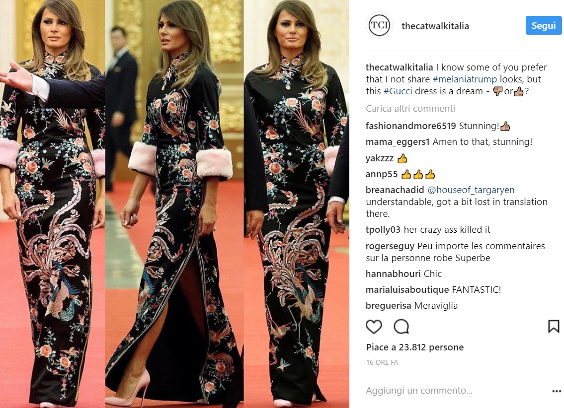 Insomma, sembra proprio che la scelta del vestito di Melania non sia andata a genio proprio a tutti, e dire che l’intento della moglie di Trump era solo quello di omaggiare la Cina, paese che li ha ospitati in questo viaggio istituzionale.