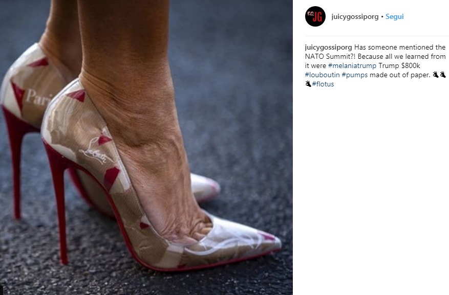 Melania Trump lancia le paper shoes. La first lady americana ha indossato un paio di décolleté dell’iconica maison francese. Un modello che non è passato inosservato per il materiale utilizzato: della carta plastificata.