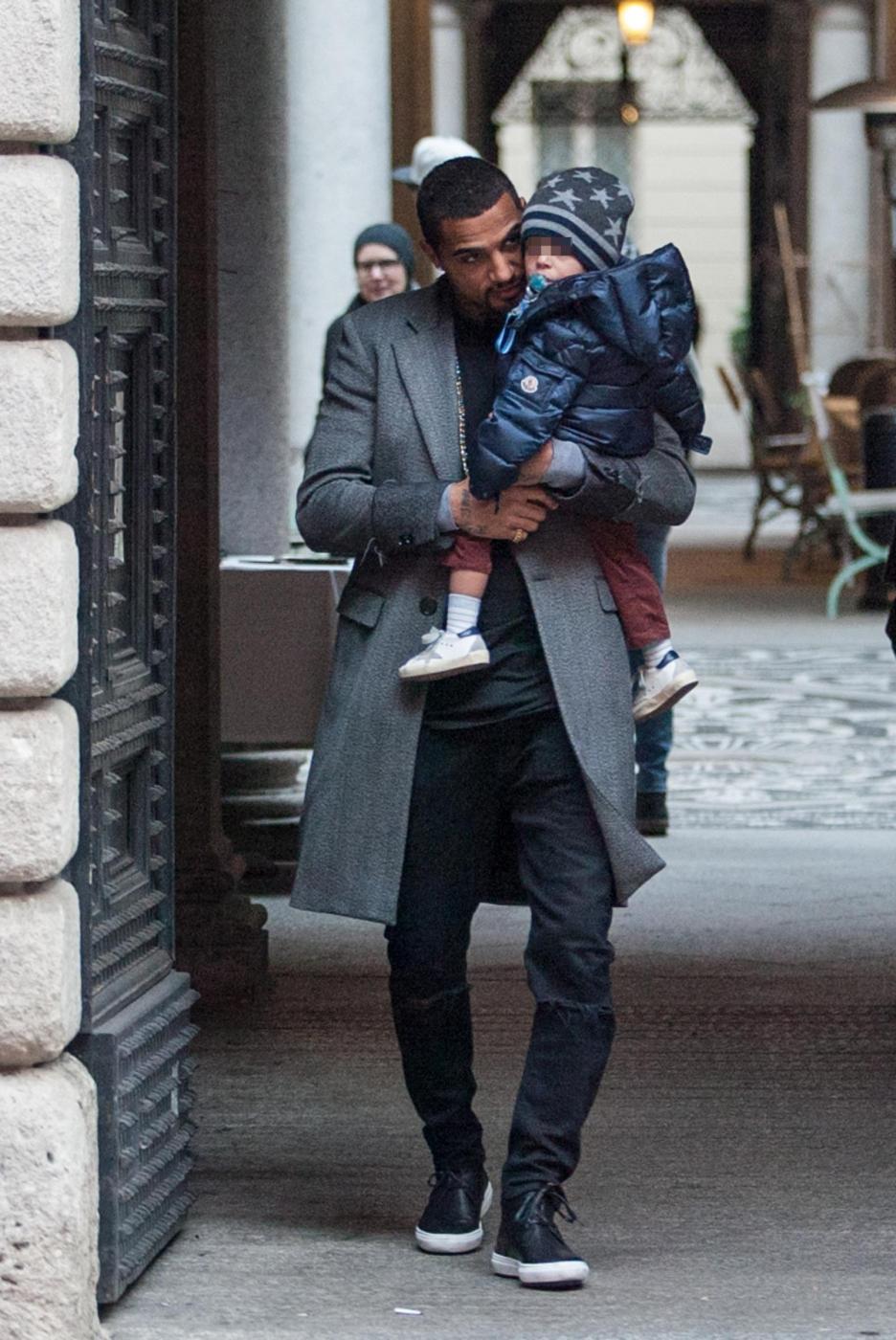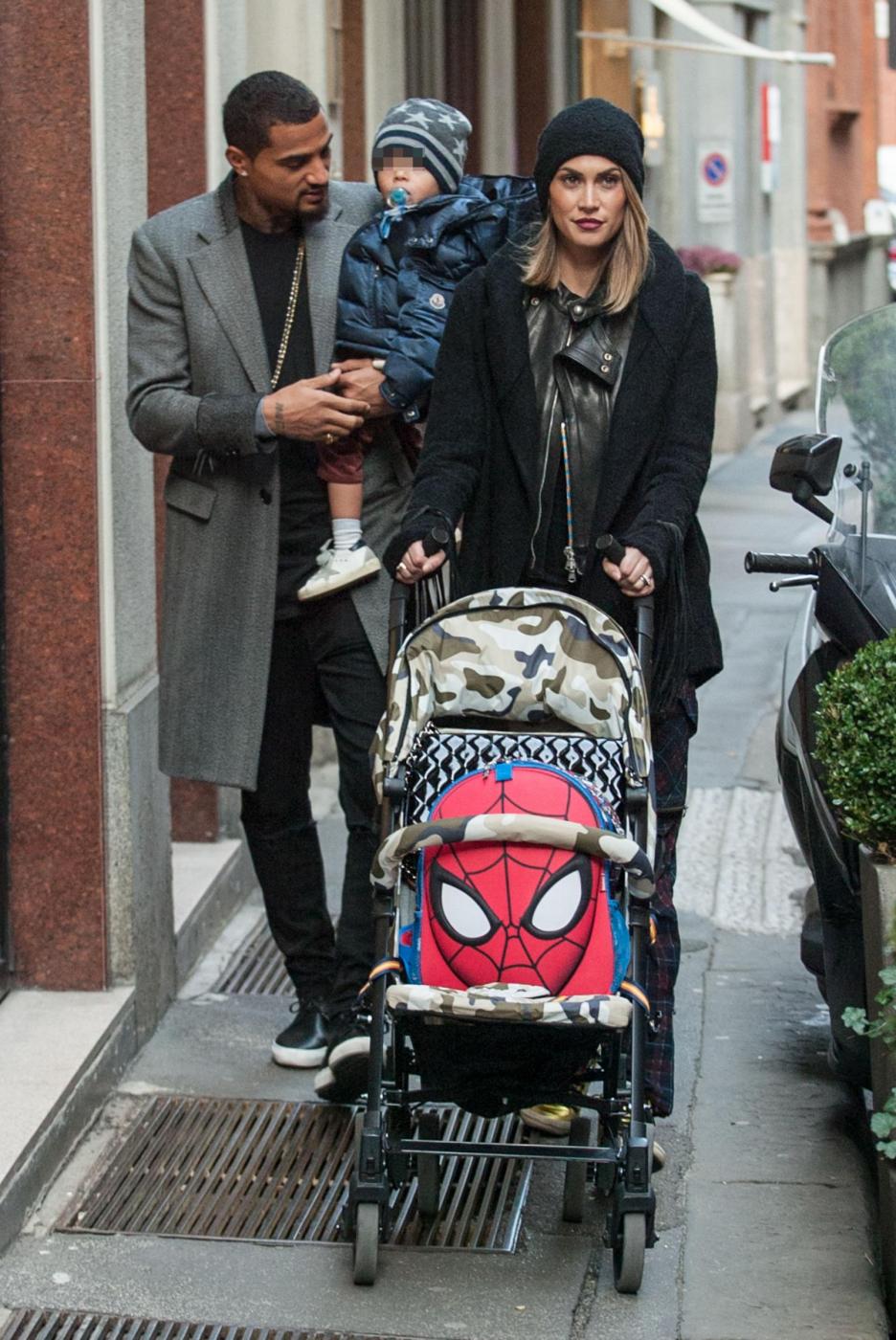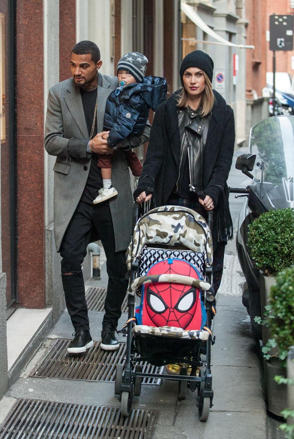 MILANO – Melissa Satta a pranzo con la moglie e con il figlio per Kevin Prince Boateng. Il calciatore del Milan ha passato un giorno di relax dopo le fatiche del campionato con la bellissima moglie e il piccolo Maddox. La famiglia è stata paparazzata all’uscita dal ristorante ‘Il Salumaio’. Dopo una passeggiata in via Montenapoleone con in braccio il figlio, Boateng si è fermato vicino al suo Suv bianco. Mamma Melissa, super alla moda con delle sneaker gialle, spingeva il passeggino. Poi sono saliti tutti in auto ma, avendola parcheggiata in divieto di sosta, la coppia ha avuto una brutta sorpresa: una multa sul parabrezza.